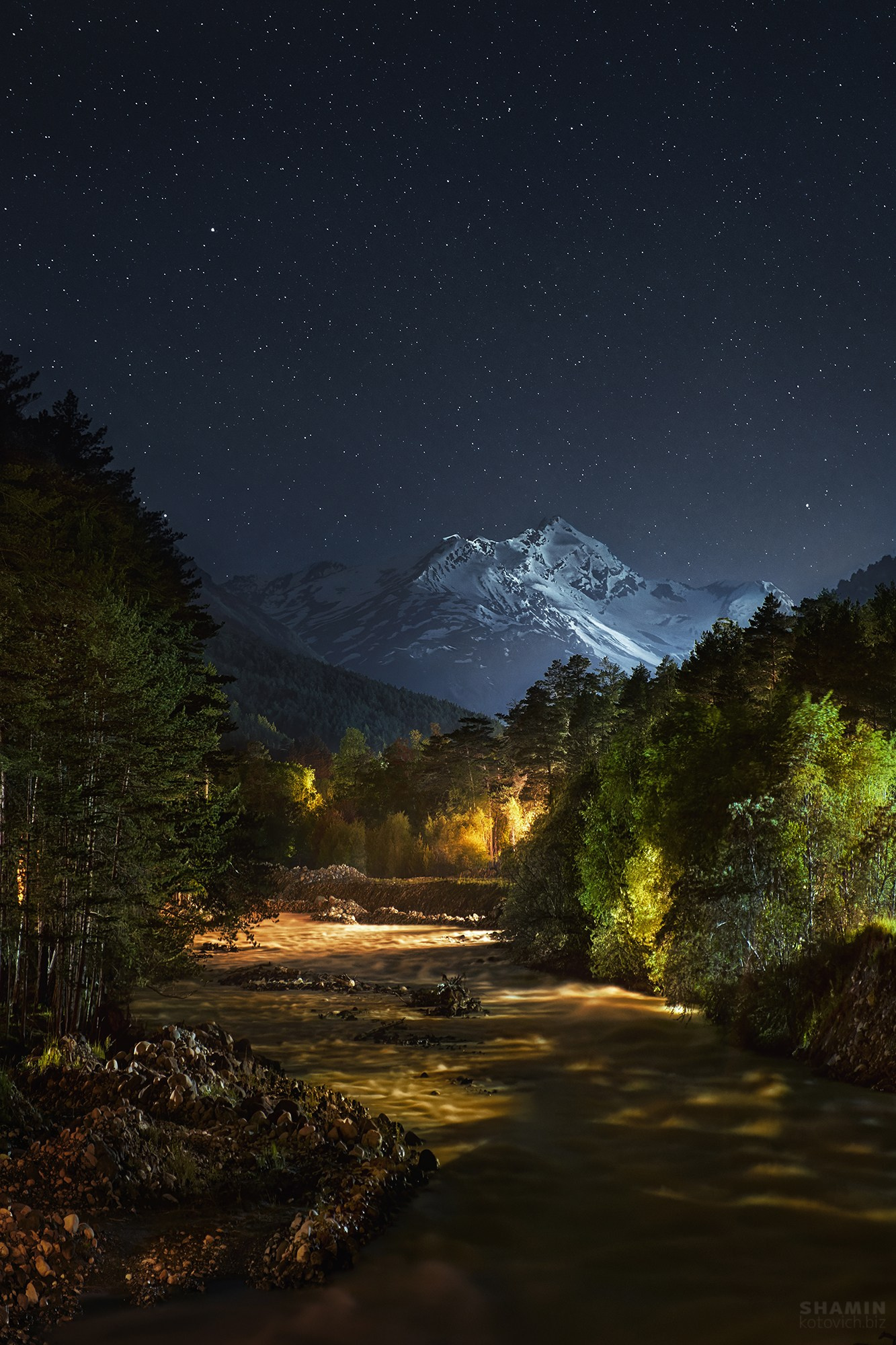 Кавказ — один из самых живописных уголков России, где можно увидеть всё разнообразие форм и состояний природы: от прозрачных утренних туманов до яркого лунного света, от глубоких теней ущелий до сияющих вершин. Ночные кадры показывают, как пейзаж живёт после заката — под звёздным небом, при лунном свете или в редких вспышках фонарей, превращающих горы в арт-пространство.
